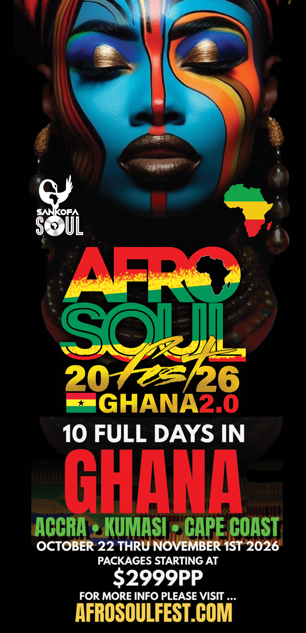 The Afro Soul Fest/Sankofa Soul welcomes YOU to join us on this travel experience that will be full of culture, edifying music and plenty of unforgettable moments.